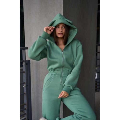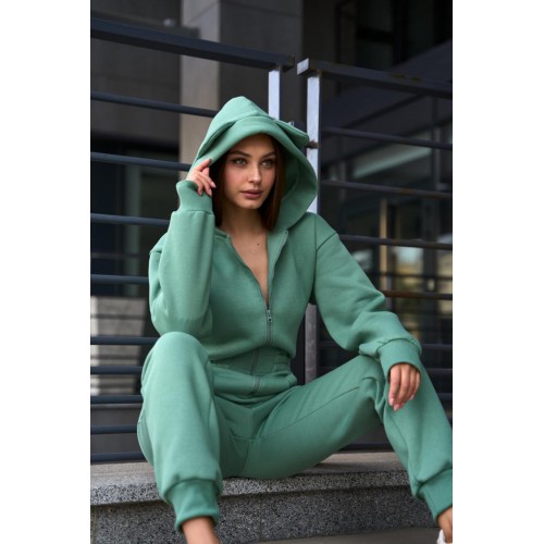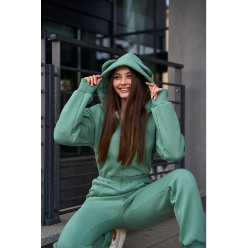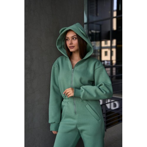 Женский комбинезон с ушами uwest, спортивный теплый костюм на флисе, оливковый, Размер XL