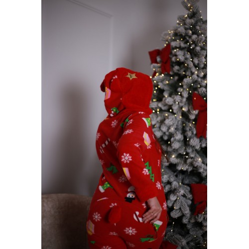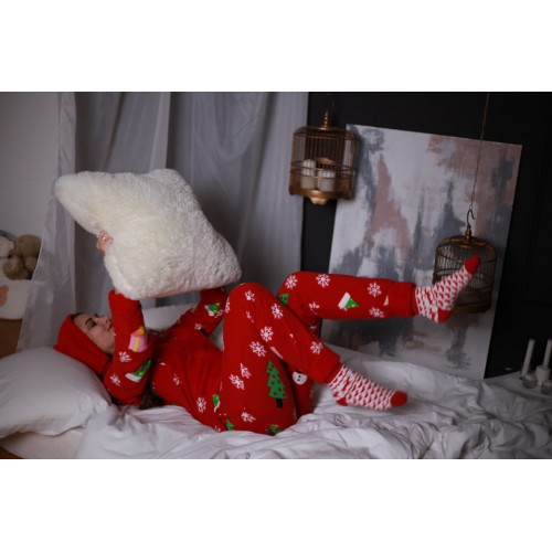 Женская пижама-кигуруми "Красная Снежинка” — это уют, тепло и новогоднее настроение в одном образе. Мягкий флис нежно окутывает тело, даря комфорт даже в самые жуткие морозы, а яркий красный цвет с белыми снежинками создает атмосферу волшебных зимних праздников.