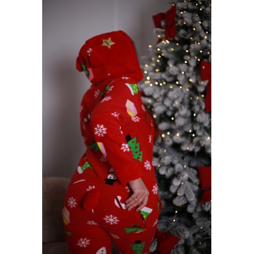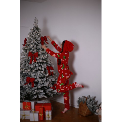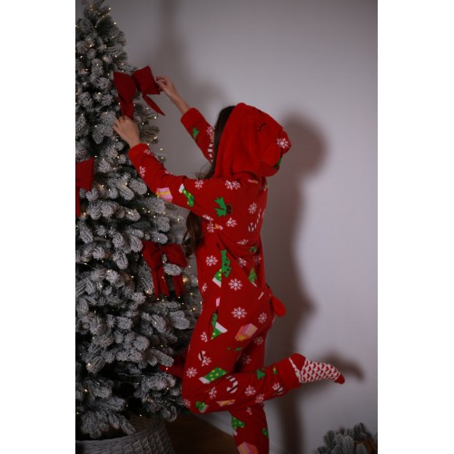 Женская пижама с карманом на попе, Снежинка Новогодняя uwest, кигуруми (пожама) Mimi Pijamoni, Красная, Размер S