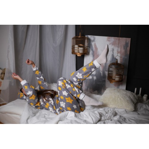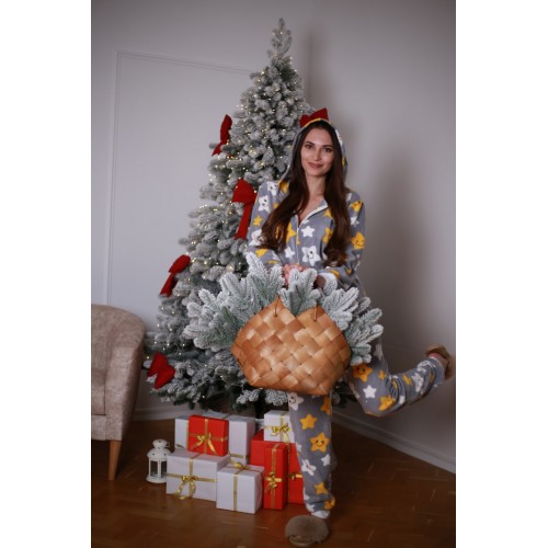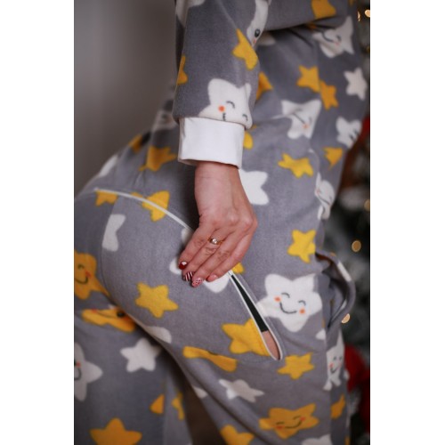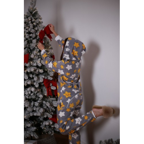 Женская пижама с карманом на попе, Звездочка uwest, кигуруми (пожама) Mimi Pijamoni, Серая, Размер XL