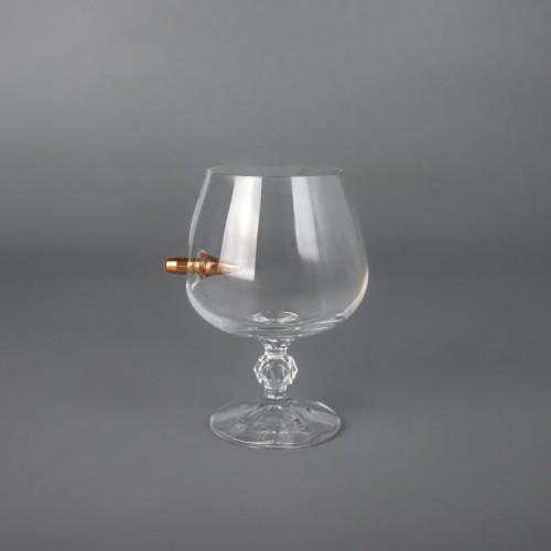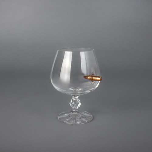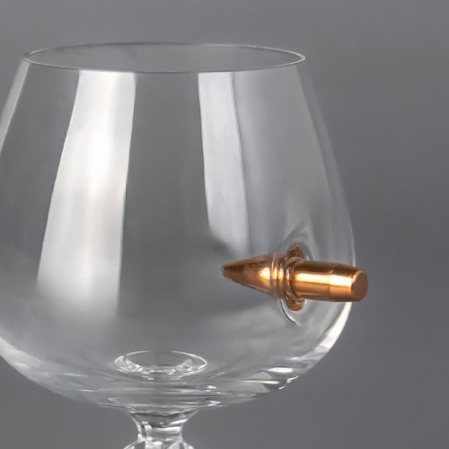 Коньячний келих зі справжньою кулею 7,62 мм - це незвичайний та оригінальний посуд, який стане особливим подарунком для чоловіка.